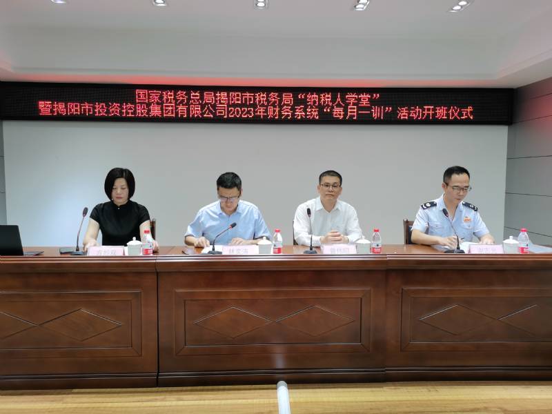 揭陽(yáng)市稅務(wù)局副局長(zhǎng)曾偉昭、市投控集團(tuán)董事長(zhǎng)林奕濤出席開(kāi)班儀式。